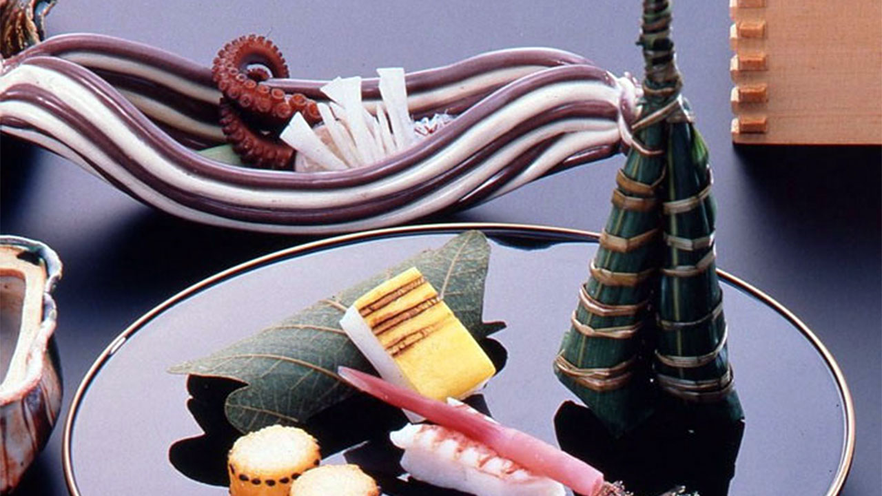 5月5日は端午の節句です。この日はお雛様と同じように男の子をイメージした1日だけの献立を用意していました。八寸に盛り付けた一品が千巻すしです。今回は千巻寿司を紹介します。