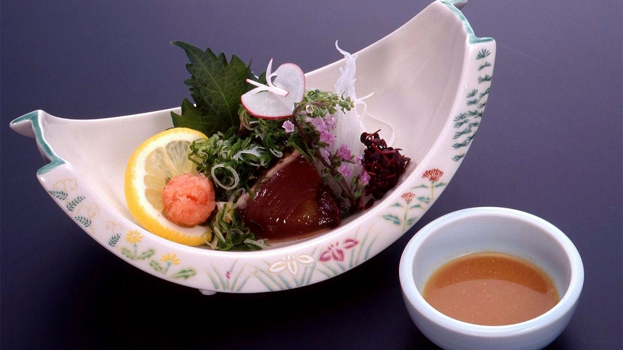 味噌だれをポン酢で伸ばして、紅葉おろし、きざみネギを和えても良くあいます。また、お刺身の場合は山葵より生姜のほうがよくあうと思います。