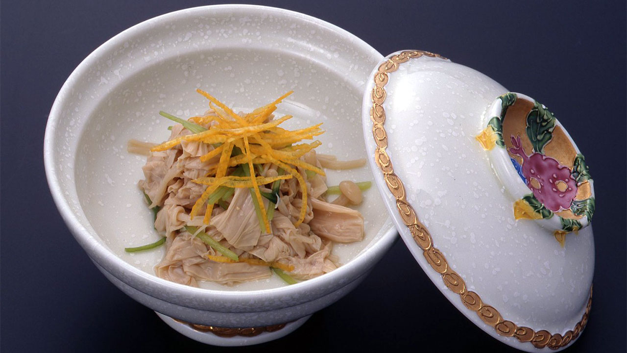 生湯葉とえのきの煮付け(沢煮)はあっさりしていて、生湯葉のうま味とえのきの歯ごたえがとても合い美味しく頂けます。この料理はご家庭でも簡単に作る事ができますので是非一度作ってみてください。