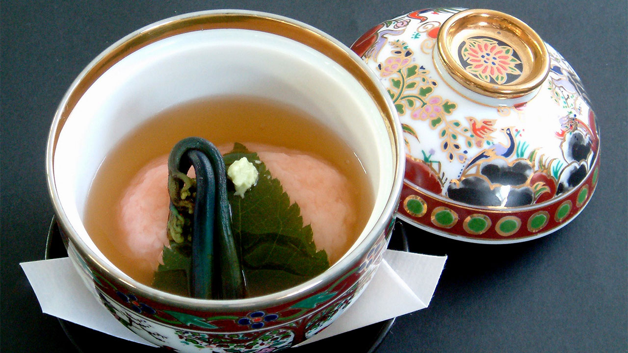 水でさらしたわらびを調味を合わて煮た出し汁を一度冷まし、出し汁にわらびを入れガーゼに包んだ鰹を容器の中に入れ冷蔵庫に約1日置く。